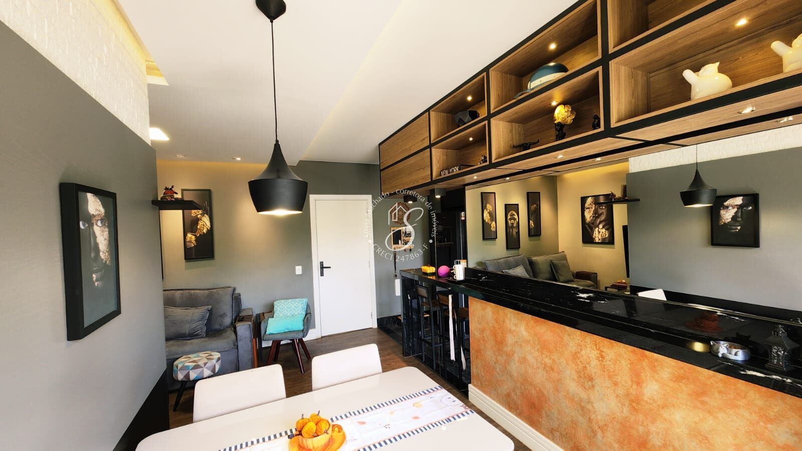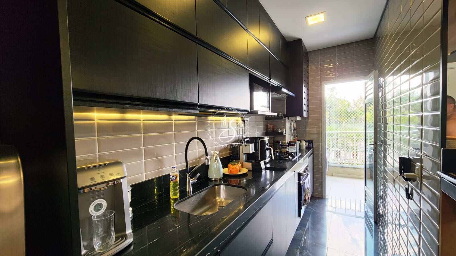 Ampla cozinha estilo americana e bastante funcional, toda planejada, integrada com sala e varanda.