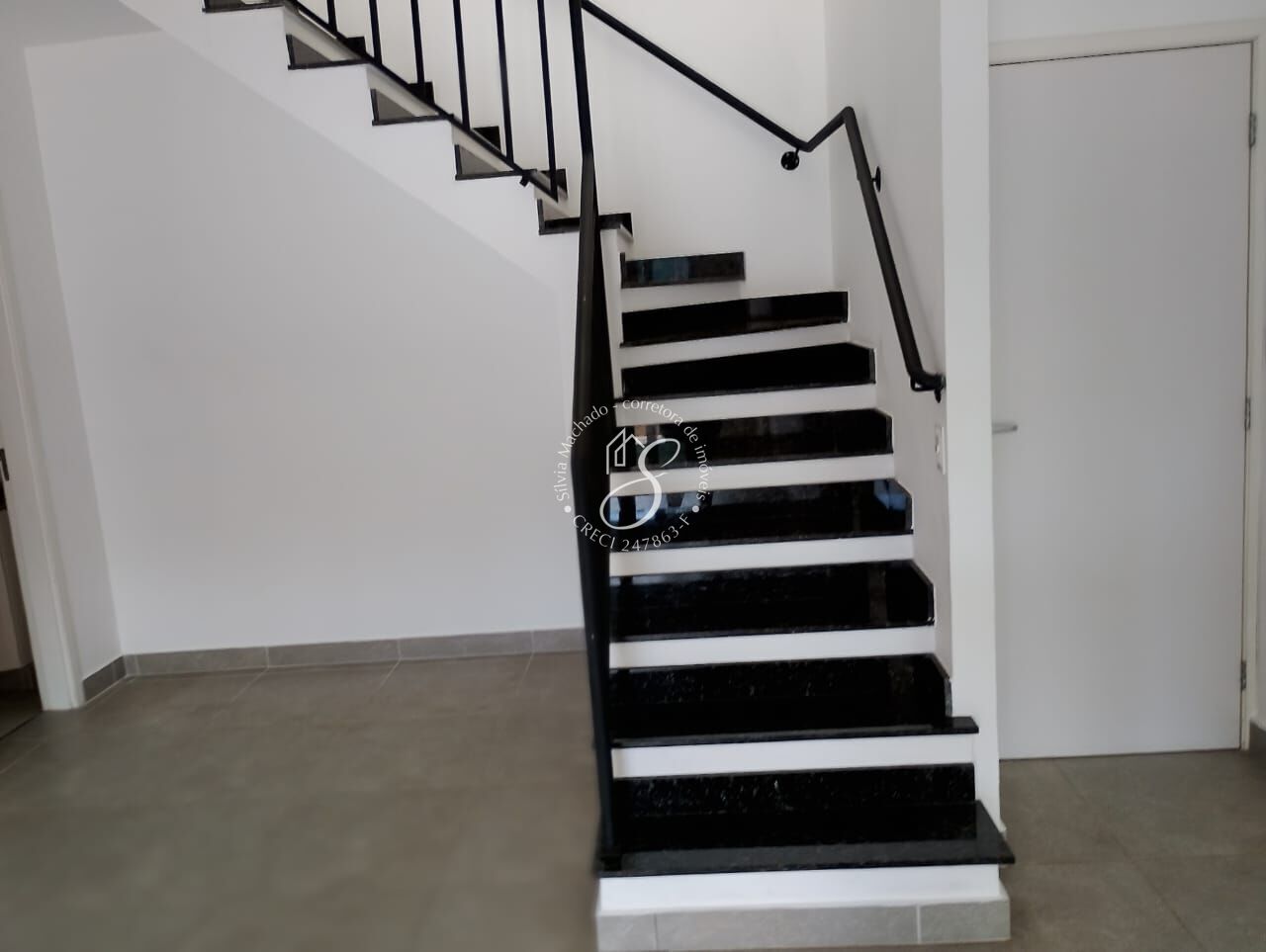 No piso superior: 1 suíte, lavabo, sala para dois ambientes, cozinha e ampla varanda